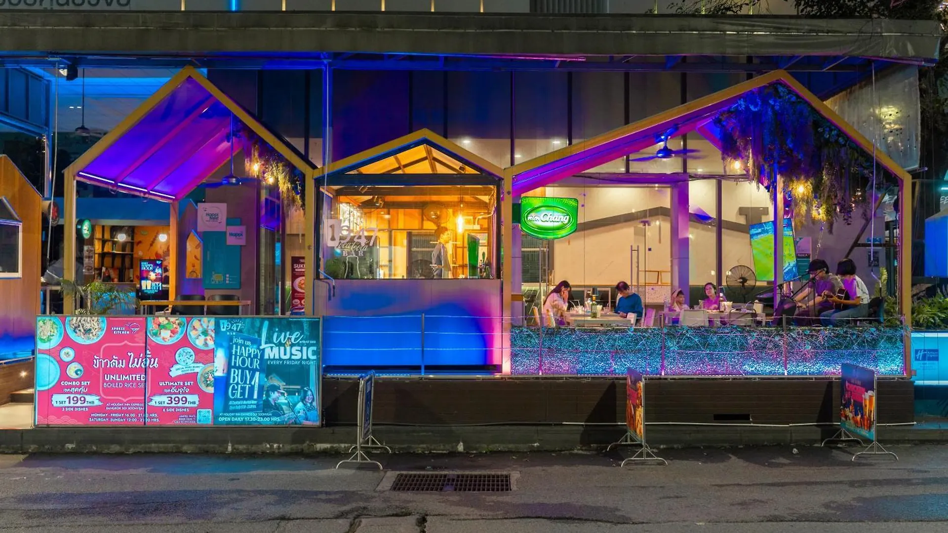 The 4-star Holiday Inn Express Bangkok Soi Soonvijai By Ihg lies in an entertainment area of Bangkok 11 minutes' walk from Live Arena, featuring a sun terrace and a shared lounge. Offering 2 restaurants with American, seafood, and international cuisine, the inn is 2.5 km from the Siam Niramit Theatre.